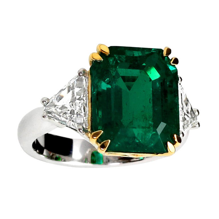 Eight Carat Colombian Emerald and Diamond Three Stone ...