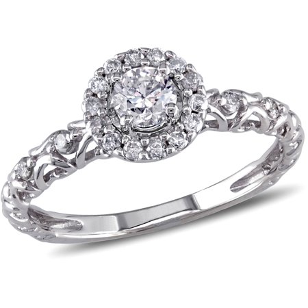 Miabella 1/2 Carat Diamond 14kt White Gold Halo Engagement ...