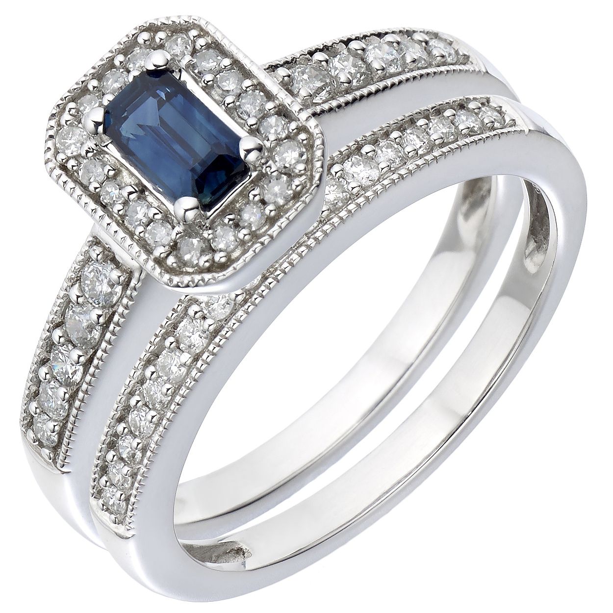 18ct White Gold Diamond & Sapphire Perfect Fit Bridal Set ...