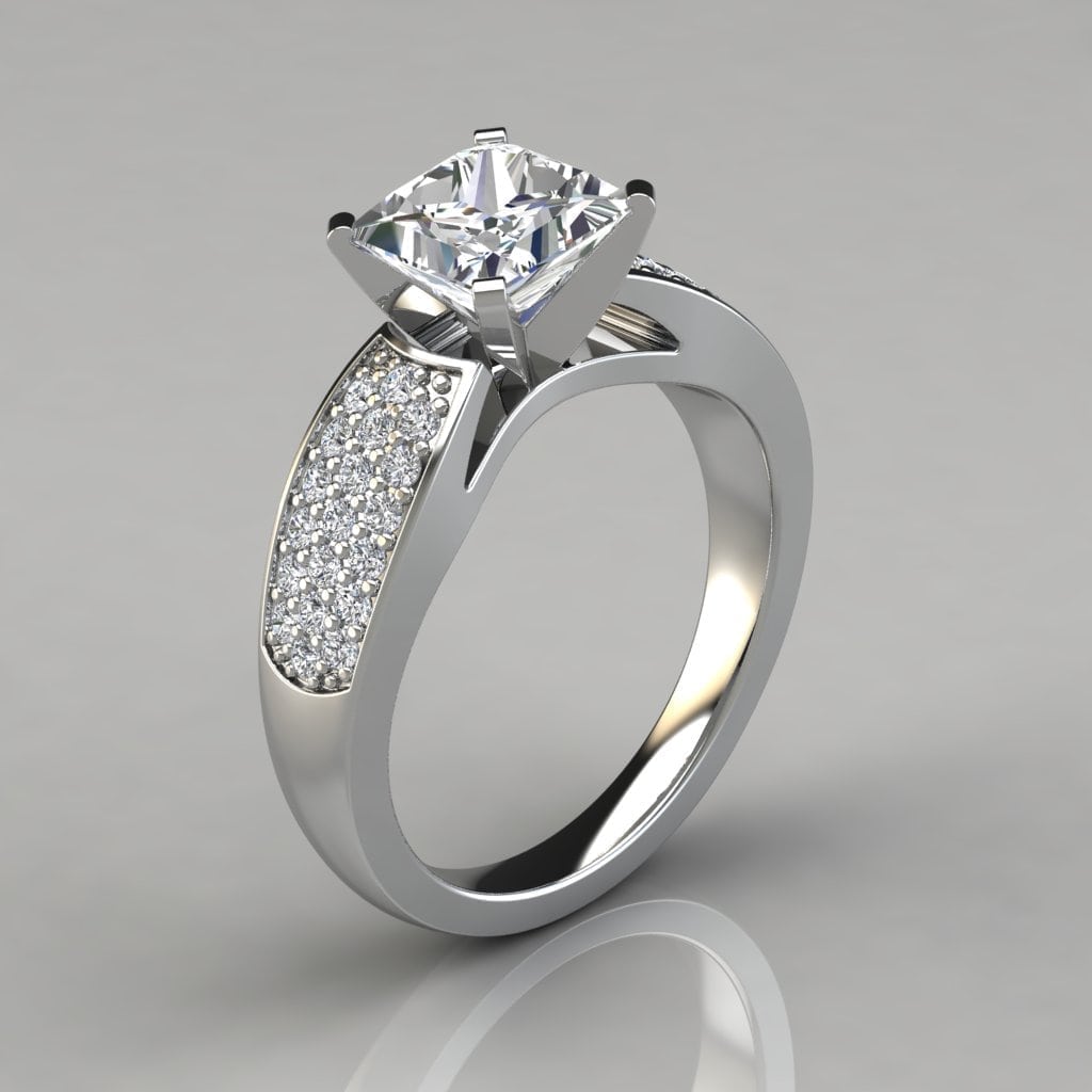 Wide Band Design Pavé Princess Cut Diamond Engagement Ring ...