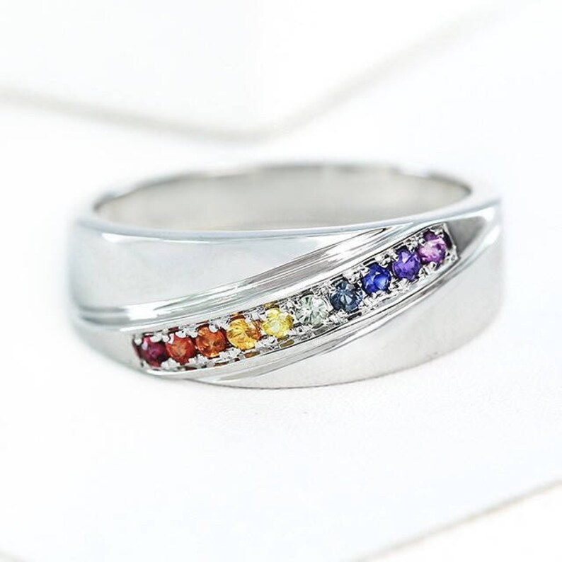 Gay Mens Rainbow Engagement Rings In 950 Platinum ...